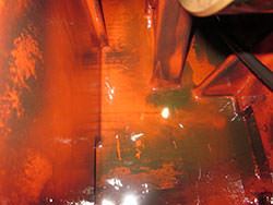 • In the inside of the gear casing were found metal particles from the broken tooth.