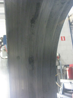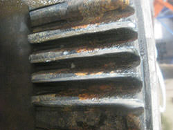 • The gearing was in poor condition. The pinion was renewed and the output gear was after a survey for bursts whirled at the shaft and minimal re-bored.